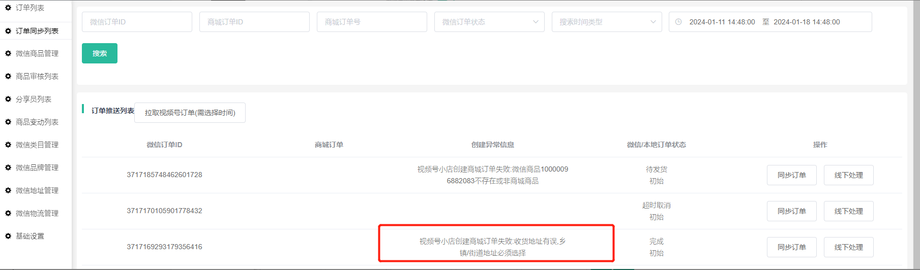 八、订单同步列表