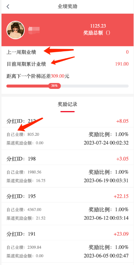 会员获得业绩奖励后后台就会有奖励记录